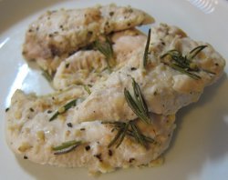 - Cover your chicken tenders with lemon juice from the lemon, rub them down with your garlic, rosemary and sprinkle them with lemon pepper.