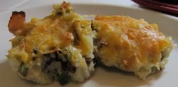 - It's time to start filling your cups! Place about 1/3 cup of your cauliflower mash in each tin. Once that is done go ahead and add a tablespoon of some of your favorite low fat cheese to each tin.