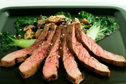 - Rest flank steak 10 minutes. Slice across grain thinly.