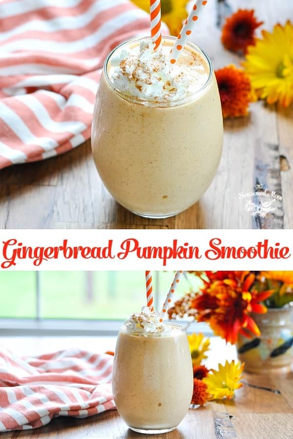 "High in protein and low in calories, this vegan Gingerbread Pumpkin Smoothie is a healthy and easy breakfast that's bursting with warm spices -- and it's ready in about 2 minutes! This gingerbread pumpkin smoothie comes together with just a handful of basic ingredients that I had in my kitchen -- with NO banana! Bananas are often added to smoothies for sweetness and thickness, but I just can't wrap my brain around the taste of banana in a gingerbread pumpkin smoothie! No, thank you. Instead, you'll need: milk (or your favorite non-dairy milk alternative), canned pumpkin puree, vanilla protein powder, spices, a pinch of salt, and plenty of ice. I also added molasses (totally optional, but it gives the smoothie that authentic "gingerbread" taste), as well as a dollop of whipped cream."