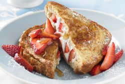 For a healthy take on strawberry stuffed French toast, try making this recipe for Strawberry Ricotta Stuffed Whole Grain French Toast from Roman Meal. Instead of cream cheese and white bread, this dish uses ricotta cheese and Roman Meal bread to add tons of healthy flavor. Healthy breakfast recipes have never tasted so decadent!