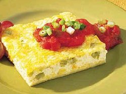 - Sprinkle 3/4 cup cheese onto bottom of lightly greased 8-inch square baking dish. Top with chiles and remaining cheese.