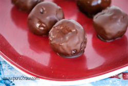 - Once you got one truffle coated with chocolate set on wax or parchment paper to cool. Then repeat the process till all truffles are coated with chocolate. Once all truffles are set then you can remove from wax paper and place on a plate to enjoy.
