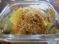 - Now spray down your apple with I Can't Believe It's Not Butter Spray and top it off with your wheat germ crumble.