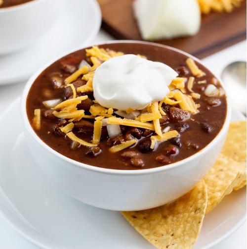 The Easiest Vegetarian Slow Cooker Chili - It doesn't matter how hot it is outside because every dad loves a good chili recipe. This slow cooker chili will cook while you're out and about and be ready for the table as soon as you get home.Â