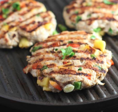 Tropical Chicken Burgers - This healthy grilling recipe features a mouth-watering combination of red peppers, green onions, mangoes, and jalapenos. It marries sweet and spicy flavors into blissful harmony.