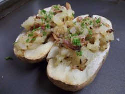 - Scoop the bacon, onion, and potato mixture back into the hollowed out potatoes. Sprinkle with chopped chives.