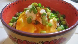 - Top off your bowls with the a dollop of Fage Greek yogurt and green onions.